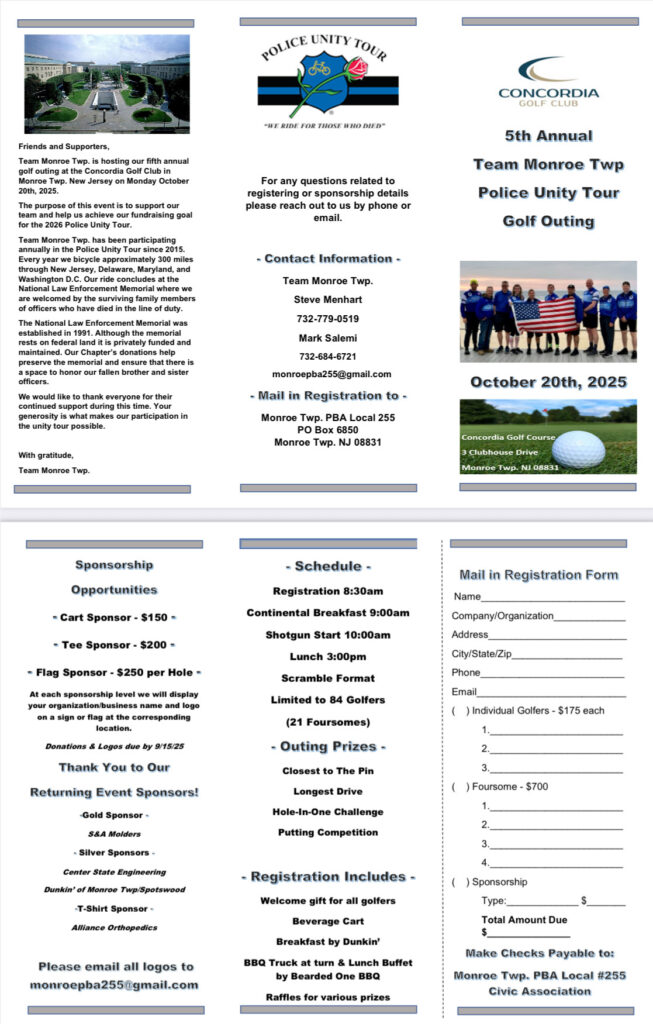 All registration forms and checks (payable to Hardyston PBA Local #374) are due by Friday, June 20, 2025.